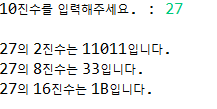 10진수를 입력 받아 2진수, 8진수, 16진수로 변환하는 프로그램 (1)