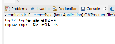 System.out.println("tmp1과 tmp2는 같은 문장입니다.");