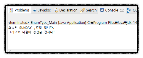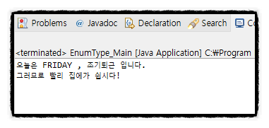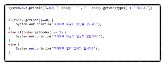 System.out.println("오늘은 "+ today + " , " + today.getWorktype() + " 입니다.");