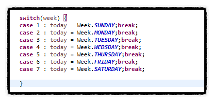 각 요일은 상황에 따라 정상근무, 조기퇴근, 휴일이라 불린다. 그리고 이 세가지 근무 타입은 0,1,2 와 같은 데이터로 처리하는게 유리할 수 있다. 이처럼 SUNDAY 하나가 상황에 따라 '휴일'로 처리되거나 '0'으로 처리되어야 할 때, Enum 클래스를 활용하면 간편하고 직관적인 코딩을 할 수 있다.