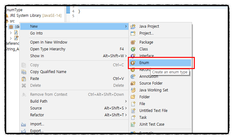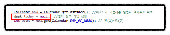 3. main 클래스는 열거상수에 저장된 객체주소를 담을 열거타입변수를 선언한다.