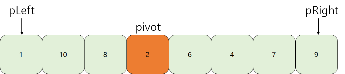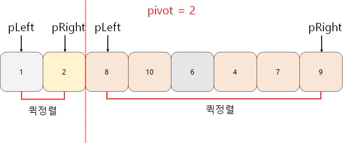if(left < pRight) quickSort(left,pRight); //좌측끝 - pRight까지 퀵정렬 재귀호출