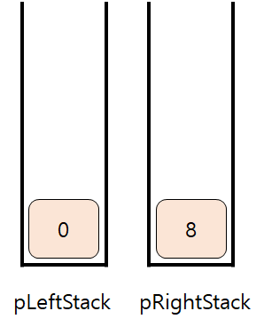 길이가 8인 배열이다. pLeft와 pRight는 0과 8이고 pivot은 2이다. 두 가지 스택을 만든다. 하나는 pLeft 용 스택, 다른 하나는 pRight용 스택이다. 첫 pLeft와 첫 pRight의 값은 배열은 처음과 끝인 0과 8이다. 첫 시작은 아래와 같다.