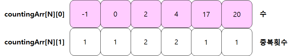 int[][] valueCountArr = new int[arr.length][2]; // 카운팅 2차원 배열 생성