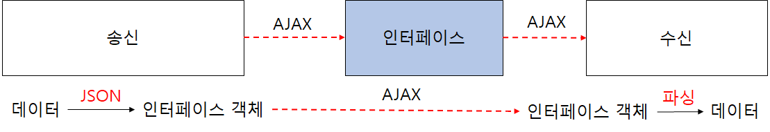송신 측이 특정 데이터 포맷( JSON / XML )으로 인터페이스로 전송하면 인터페이스는 수신측으로 이를 전달하는 구조