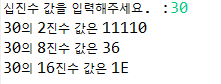 10진수를 입력 받아 2진수, 8진수, 16진수로 변환하는 프로그램 (2)