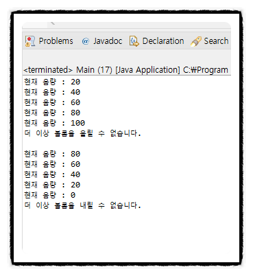 while(remote.getVolume() < Remotecontrol.MAX_VOLUME) { //인터페이스 상수랑 비교