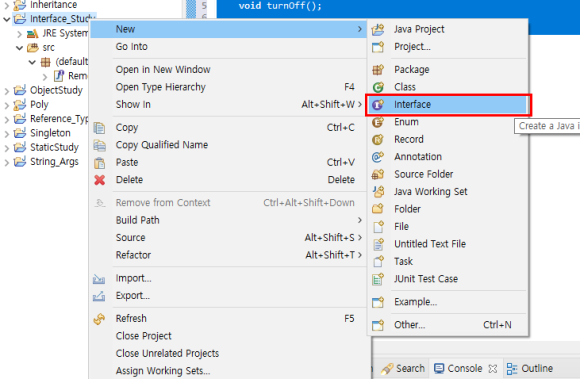 이 3가지가 인터페이스에서 생성가능한 메소드들이다. 디폴트 메소드를 사용해보자.