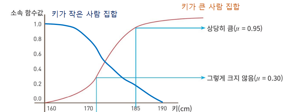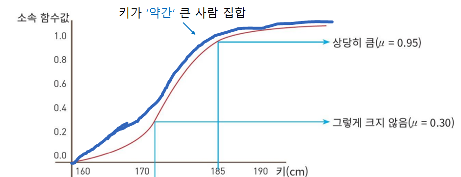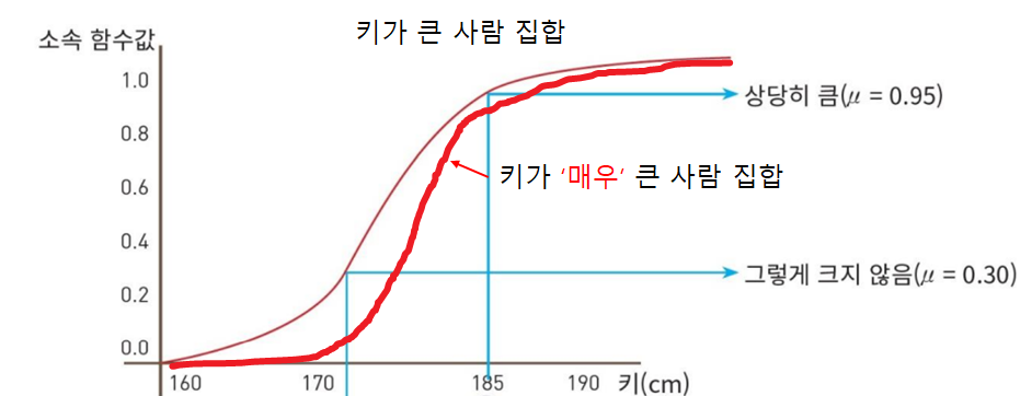 키 큰 사람 집합 A : { 0.3/172cm, 0.5/175cm, 0.95/185cm, 1.0/190cm }