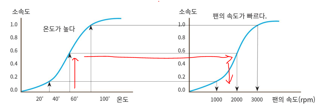 온도에 따라 팬의 속도를 조절하는 간단한 인공지능이 구현되었다.