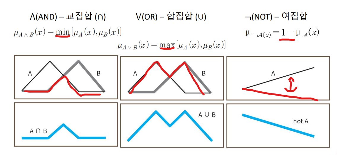 교집합이므로 두 함수를 비교하여 소속도가 최소(min)인 함수를 구한다.