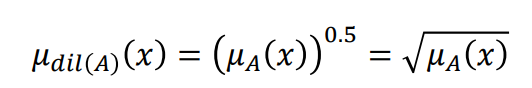 '약간'이라는 표현이 들어가면 소속도의 '제곱근'을 구한다. 소속도는 1보다 작기에 루트를 씌우면 값이 더 커진다. 소속도가 0에 가까울수록 값이 크게 증가한다. 고로, 팽창 연산자는 작은 소속도를 더 크게 만드는 연산이다.