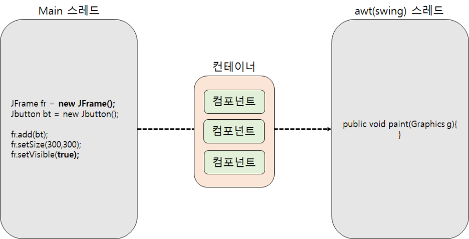main스레드가 awt와 swing 스레드에게 외주를 맡기려면 먼저 '어떻게' 그려야 하는지 설명 해주어야 한다.