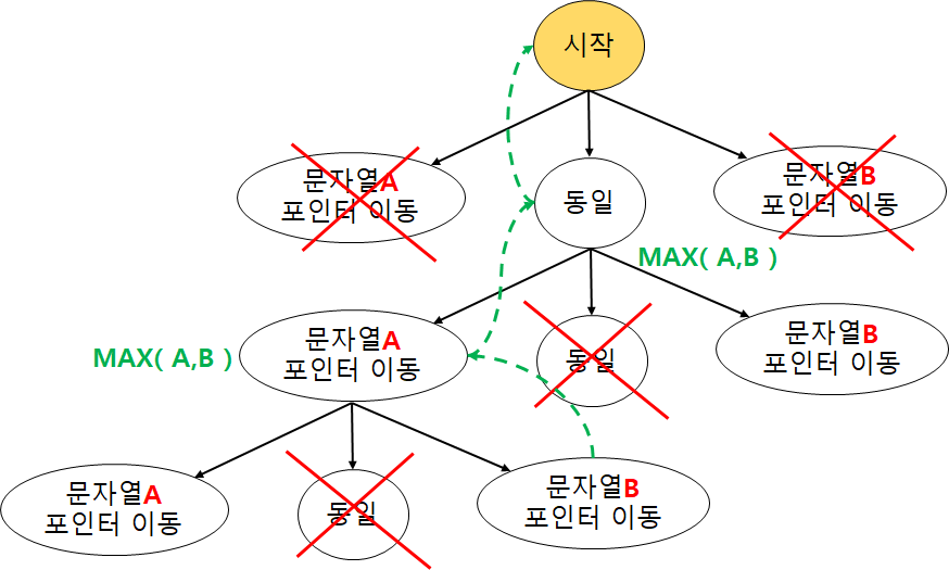 문자열 A와 문자열 B의 최종 LCS는 3이 된다.
