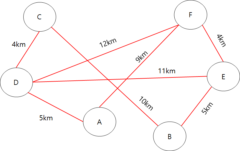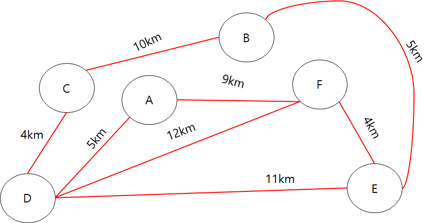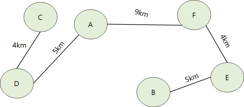 예제) 모든 도시를 오갈 수 있는 고속도로를 건설하려고 할 때, 총 고속도로 길이의 최소값을 구하라.