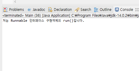 System.out.println("저는 Runnable 인터페이스 구현객체의 run()입니다.");