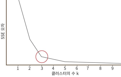 군집이 많아도 SSE가 별차이 없으니 적당한 군집의 개수는 팔꿈치처럼 접히는 지점이다.