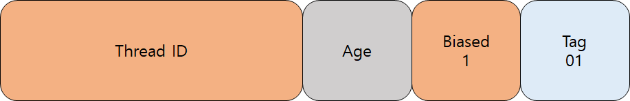 Biased 비트는 1로 바뀌어 해당 Mark Word는 Biased Lock임을 나타내는 flag의 역할을 한다. 그리고 HashCode는 해당 스레드의 ID로 바뀐다. 그러므로 스레드가 Lock을 획득하기 위해 재접근을 했을 때, 해당 스레드가 Thread ID와 일치하다면 별다른 동기화 검사 없이, 손쉽게 Lock을 획득할 수 있다.