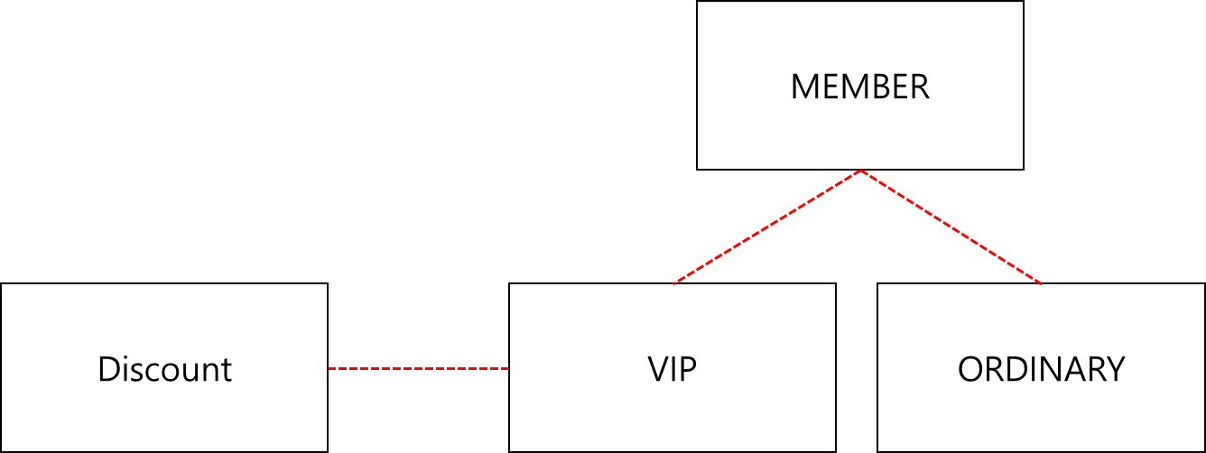 VIP 클래스나 ORDINARY 클래스의 공통된 데이터에 대한 로직은 MEMBER 클래스에 접근하는 것이 좋다. 반면 VIP 할인과 같이, VIP만 해당되는 영역은 VIP만 따로 접근하는 것이 좋다.