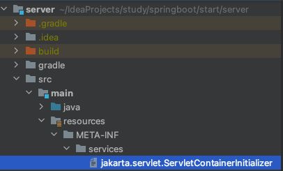 META-INF > services > jakarta.servlet.ServletContainerInitializer 파일에 아래와 같이 구현체경로를 넣어준다.