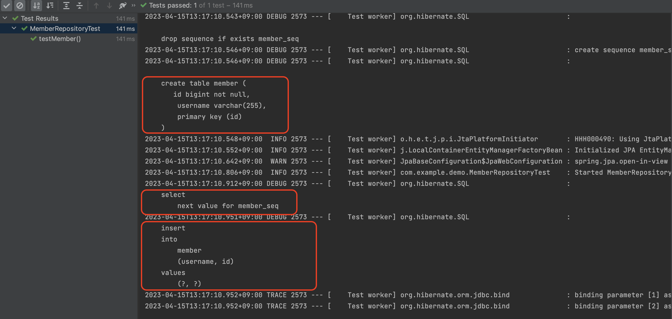 SQL 쿼리문이 실행되었음을 로그를 통해 확인 가능하다. SQL문 관련해서는 JPA와 관련되므로 해당 포스팅에서는 다루지 않겠다.
