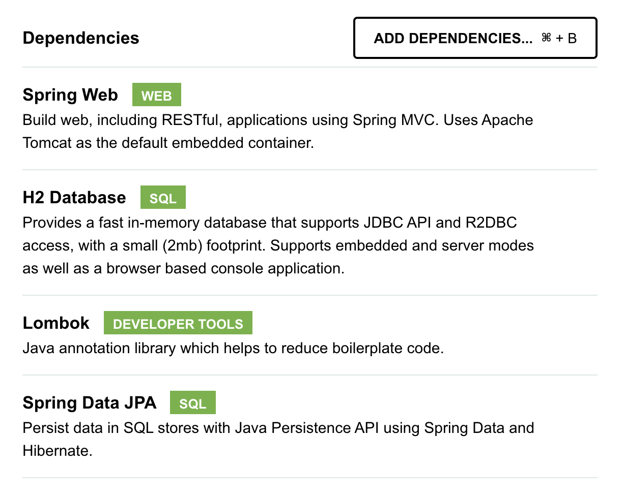 H2가 다른 DB와 차별된 점은 Embeded모드이다. SpringBoot로 프로젝트를 하나 생성해보겠다. ( https://start.spring.io/ )