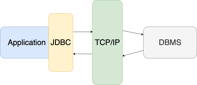 Application에서 DB에 read/write 하려면, DBMS와 맞는 JDBC 라이브러리를 설치하여 TCP/IP 통신을 해야한다. 이와같이, Application과 DBMS가 독립된 프로세스로 분리되어 있으면 DBMS는 많은 기능을 제공할 수 있다.