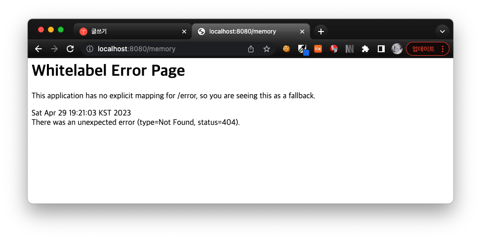 그럼 MemoryController 가 Bean으로 등록되므로, 이제 URL로 해당 기능에 접근이 가능해진다.