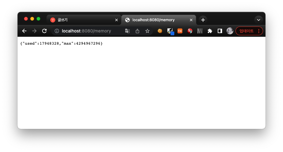 사용중인 Memory 양과 최대 사용가능한 Memory양이 출력되었다.