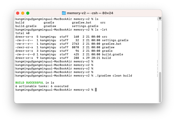 터미널로 프로젝트 위치로 이동하여 build를 진행한다.