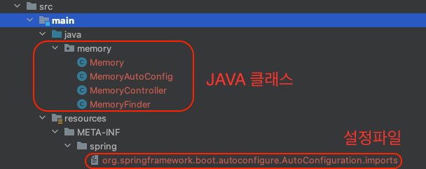 MemoryAutoConfig 클래스가 설정클래스로 IOC컨테이너에 어떤 Bean을 등록해야 하는지 정리되어 있다.