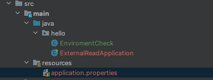 외부설정파일은 프로퍼티파일이 jar 밖에 있었다. 프로퍼티파일을 jar 안에 생성할 수 있다.