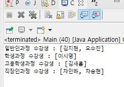 CourseSystem.printCourse(highStudentCourse); // 고등학생 강좌 수강생 출력