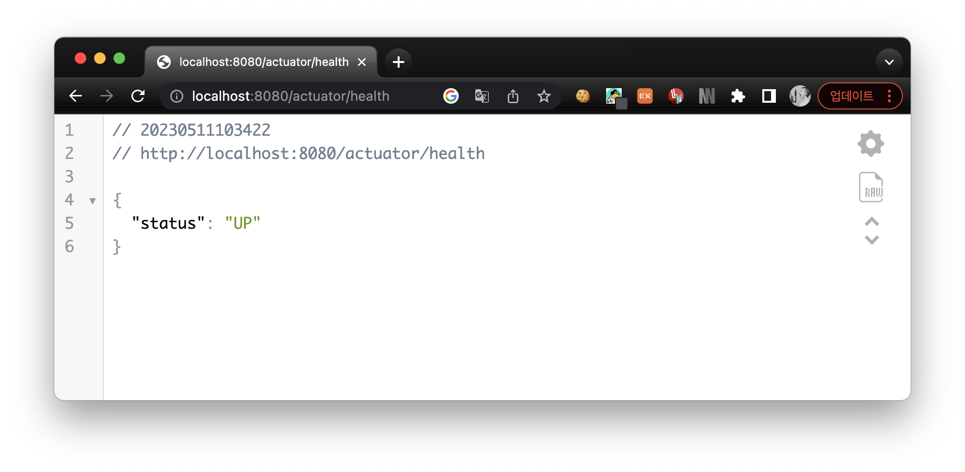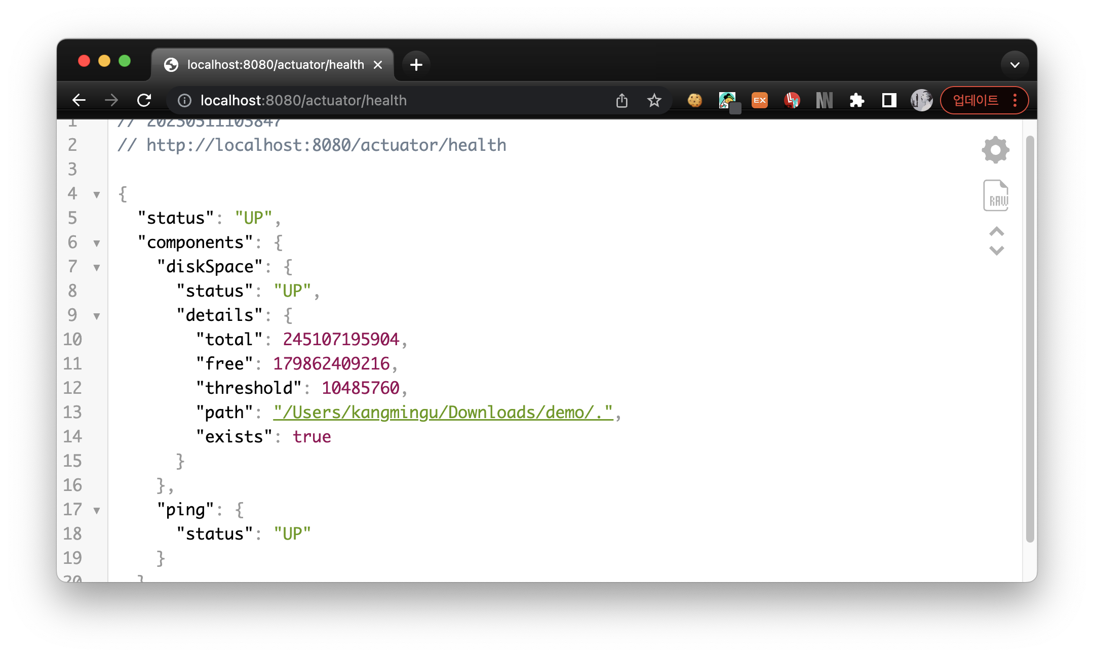 endpoint로 health를 특정해서 설정을 추가하면 된다. 프로젝트를 다시 실행해보자.
