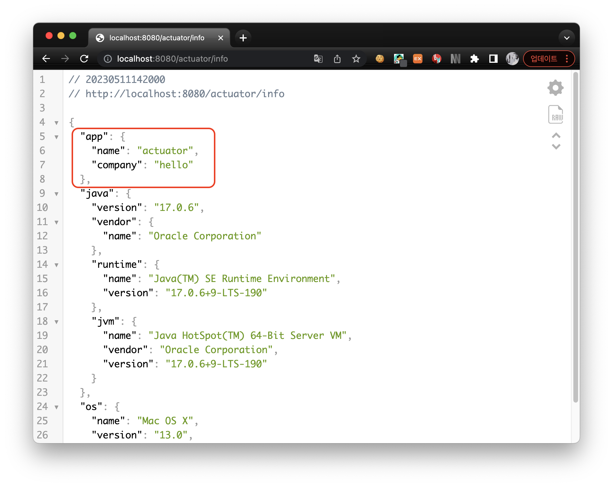 ▶︎ URL 형식 : http://localhost:8080/actuator/info