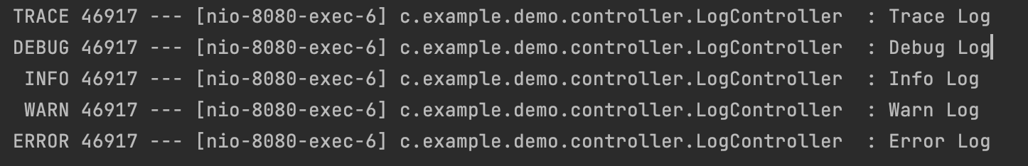 로그레벨이 Trace로 바뀌었다. LogController를 호출해보자.