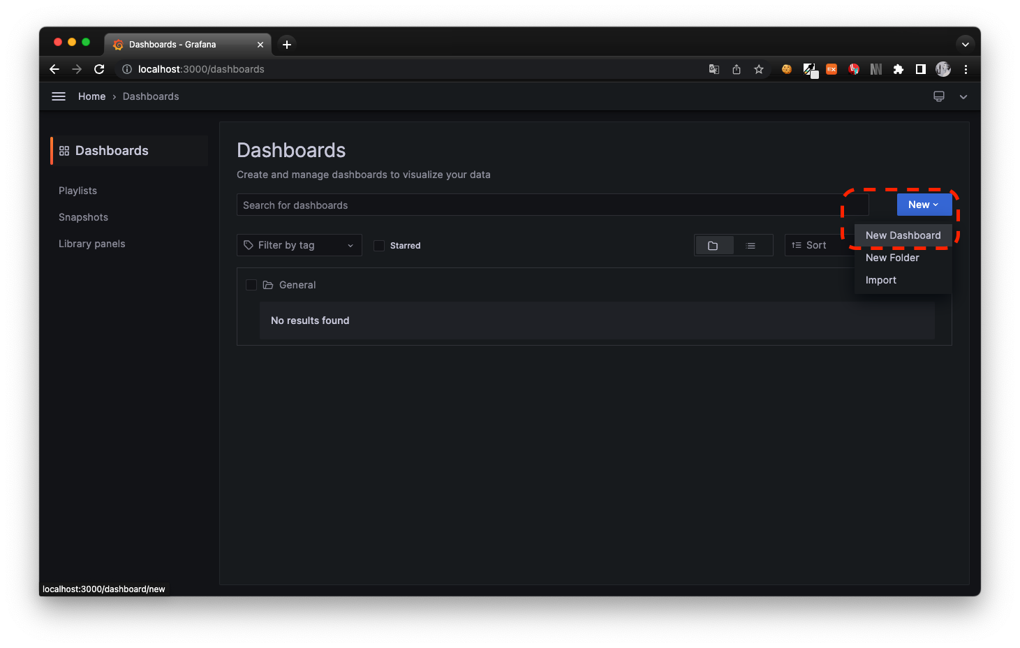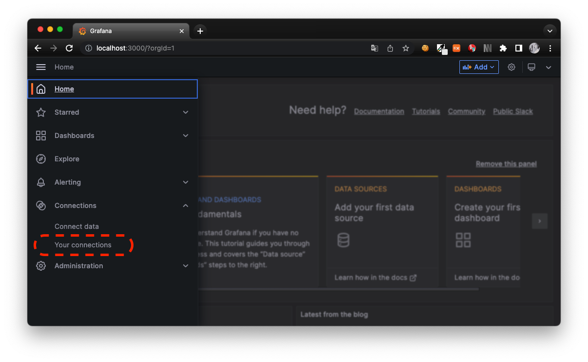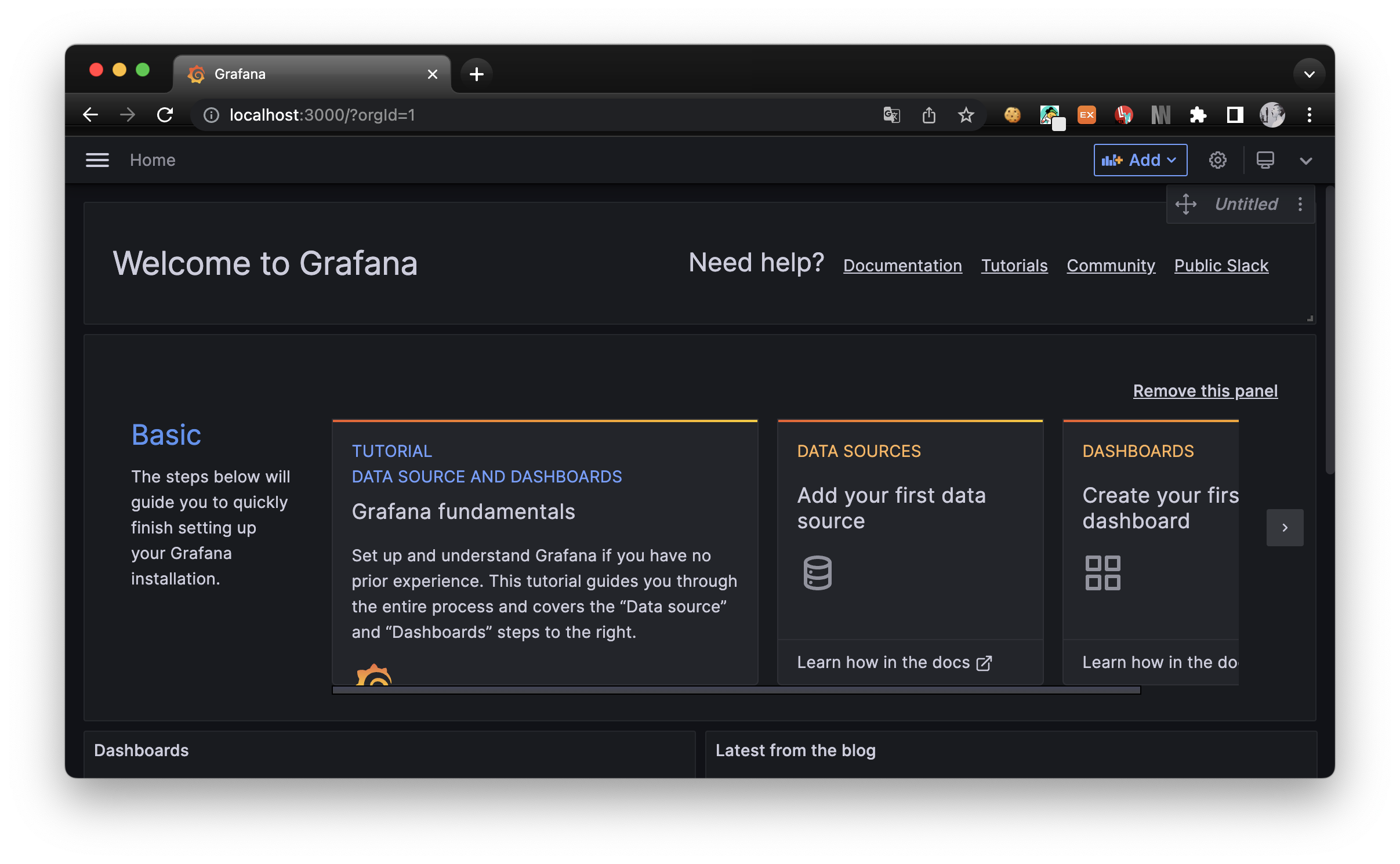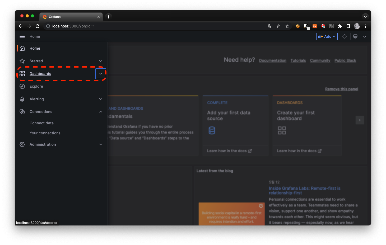해당 화면이 열리면 Grafana 서버가 정상동작중임을 의미한다.