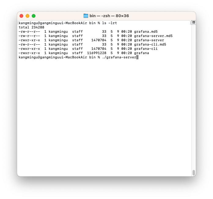 압축을 풀고 터미널에서 bin폴더로 이동하여 Grafana 서버를 실행한다.