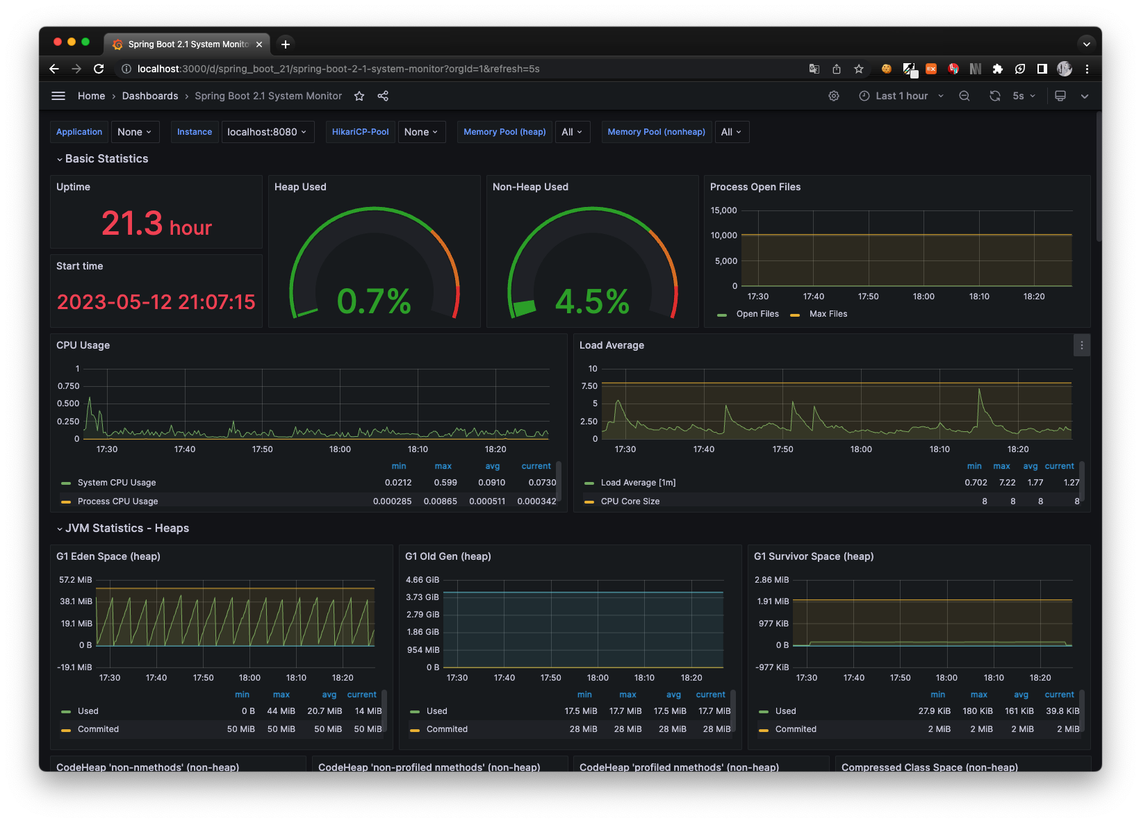 그럼 Application을 운영하는데 필요한 기본적인 메트릭의 추이를 한눈에 확인할 수 있다. 여기서 필요한 부분은 추가하고 불필요한 부분은 제거하여 커스터마이징하면 된다.