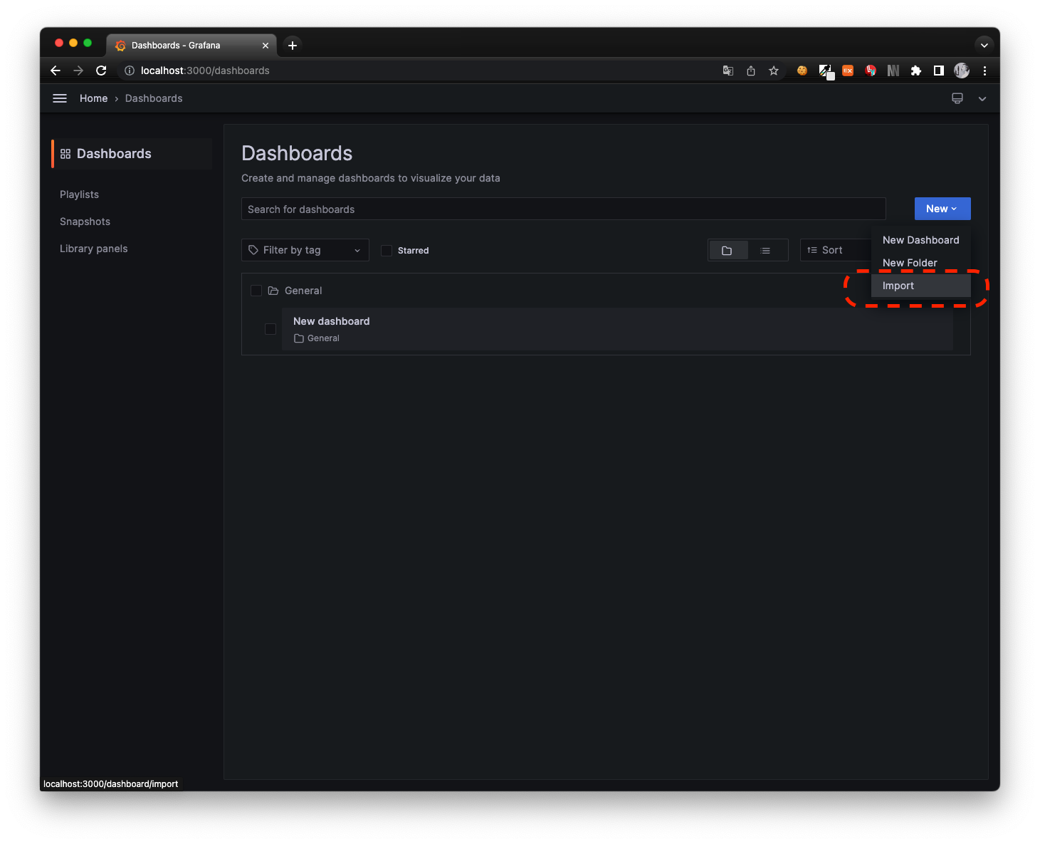 그러면 위 화면이 나오는데 NEW 버튼 누르고 Import를 클릭한다.