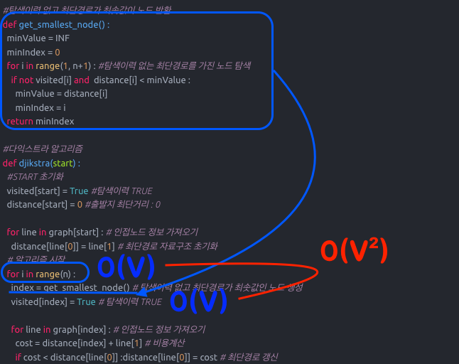 distance[start] = 0 # 최단경로테이블 최적해 갱신