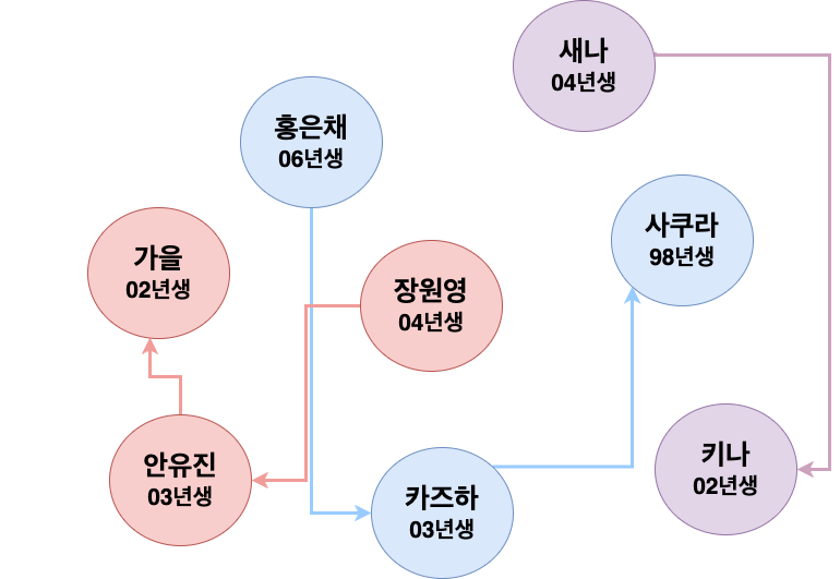 홍은채와 장원영은 같은 리더를 따르므로 둘은 연결되어있다.