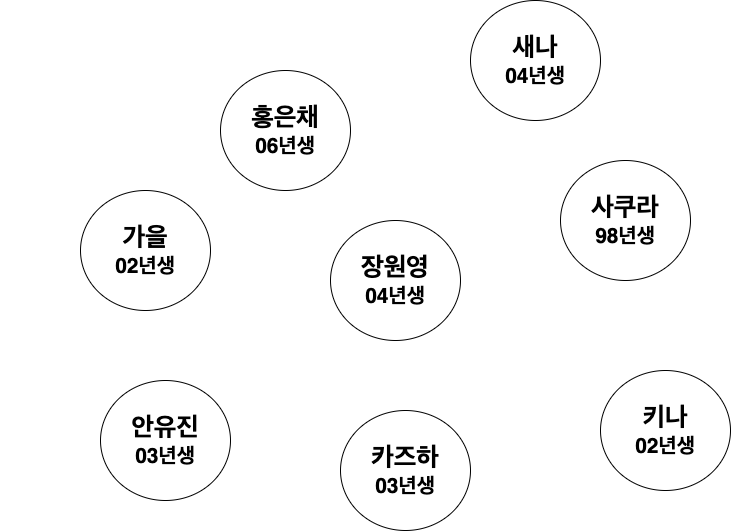 | 멤버 | 사쿠라 | 카즈하 | 홍은채 | 가을 | 안유진 | 장원영 | 키나 | 새나 |