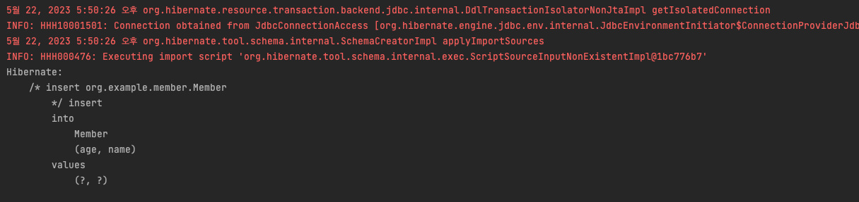 로그를 보면 INSERT문이 자동생성되어 수행되었음을 확인할 수 있다.