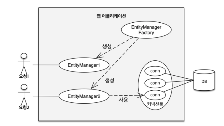 SpringBoot의 경우, EntityManager가 HikariCP 프레임워크가 제공하는 커넥션풀에 접근하여 커넥션을 얻는다. 이처럼 JPA는EntityManager가 커넥션에 접근한다.