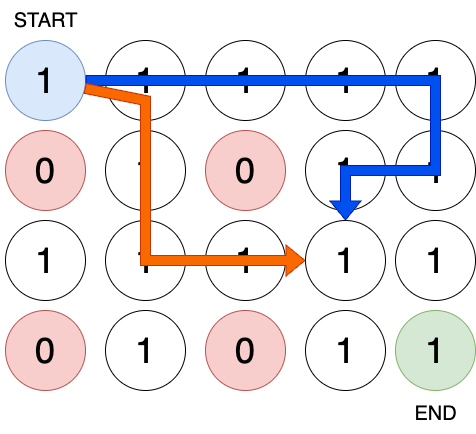 그러므로 파란색 경우는 최단거리가 아니다. 방문이력이 있는 노드에 접근한 경로는 제외되는 방식으로 넓이우선탐색을 하면 쉽게 최단거리를 구할 수 있다.