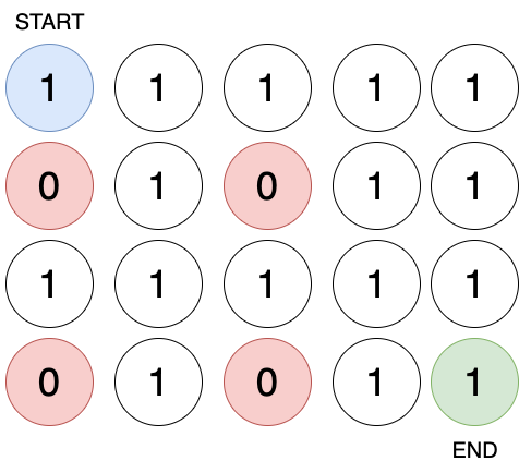 N x M 크기의 직사각형 형태의 미로에 여러 마리의 괴물이 있어 이를 피해 탈출해야 한다. 현재 위치는 (1, 1)이고 미로의 출구는 (N,M)의 위치에 존재하며 한 번에 한 칸씩 이동할 수 있다. 괴물이 있는 부분은 0으로, 괴물이 없는 부분은 1로 표시되어 있다. 미로는 반드시 탈출할 수 있는 형태로 제시된다. 탈출하기 위해 움직여야 하는 최소 칸의 개수를 구하라. 칸을 셀 때는 시작 칸과 마지막 칸을 모두 포함해서 계산한다.