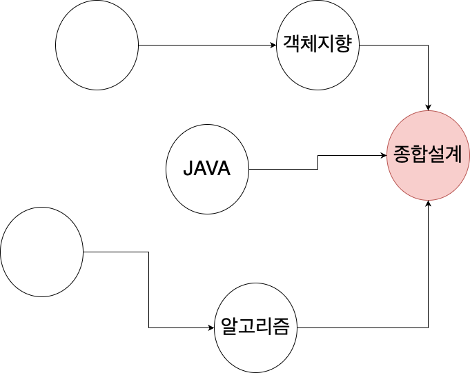종합설계 과목은 객체지향,JAVA,알고리즘 세가지 선수과목을 가진다. 여기서 객체지향, JAVA, 알고리즘은 순서대로 처리되지 않는다.