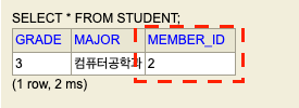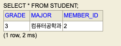 테이블은 MEMBER 테이블 하나만 생성된다.