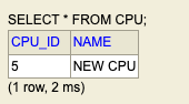 UPDATE문이 실행되어 새로운 CPU로 교체되고 DELETE문이 실행되어 고장난 CPU는 제거되었다.
